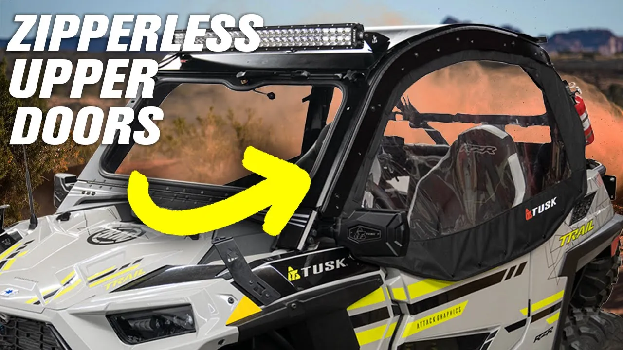 Tusk Zipperless Upper Doors makes riding in any condition more enjoyable. Riding in the morning can be cold, by the afternoon it may get hot. The Tusk Zipperless upper doors are the solution with no compromises! With a Patent Pending revolutionary self-aligning magnetic closure system, these doors open and close quickly and with ease. No zippers to malfunction making these doors easy to use and safe in an emergency. The Tusk Zipperless Upper Doors easily roll up to stow. Made of high-quality materials that have been UV and cold crack tested they are made to last.